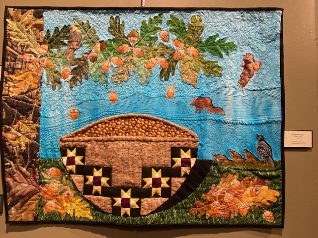 In addition to the people who participated in the art quilting project, there are numerous other artists contributing to the show in other mediums. They are Bonnie Lockhart (Sherwood Valley Rancheria), Eric Wilder (Kashia), Jewlina Acosta (Yokayo Rancheria), Jacqueline Graumann (Little River Band of Pomo Indians Redwood Valley, Wanda Quitiquit (Robinson Rancheria), Kilak Malicay (Robinson Rancheria), Crystal Pagal (Round Valley), Tara Martinez (Little River band of Pomo Indians Redwood Valley). (full article in Ukiah Daily Journal, November 2nd. 2022.)